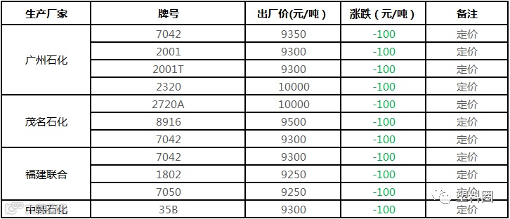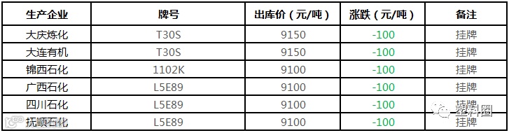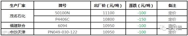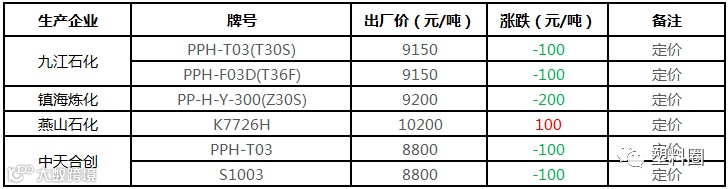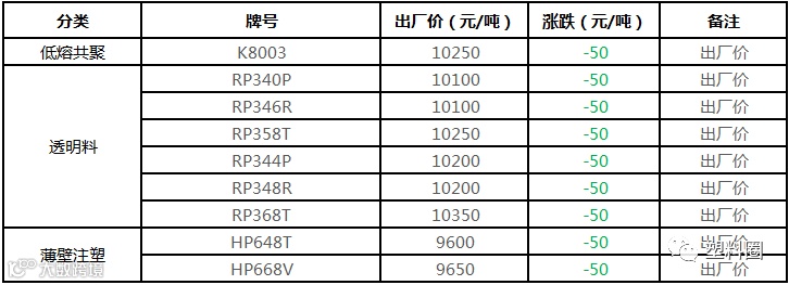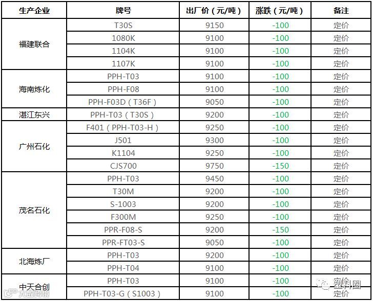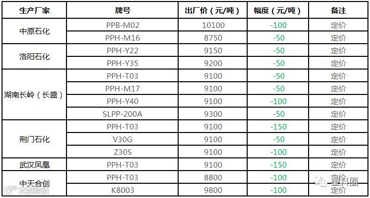 中油华南PP挂牌价格部分下调100元/吨!!!