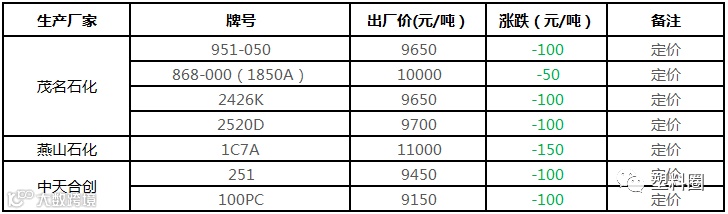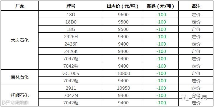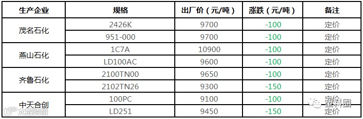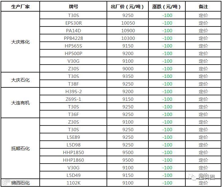 中油东北PE价格多数下调100元/吨!!!