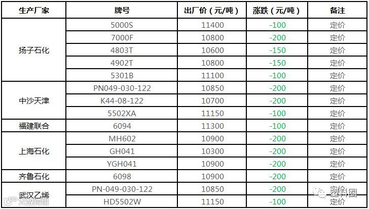 中石化华南HDPE/LDPE定价部分下调50-150元/吨!!!
