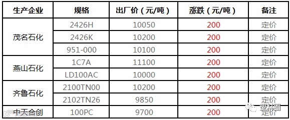 中石化华南HDPE个别价格上调100元/吨!!!