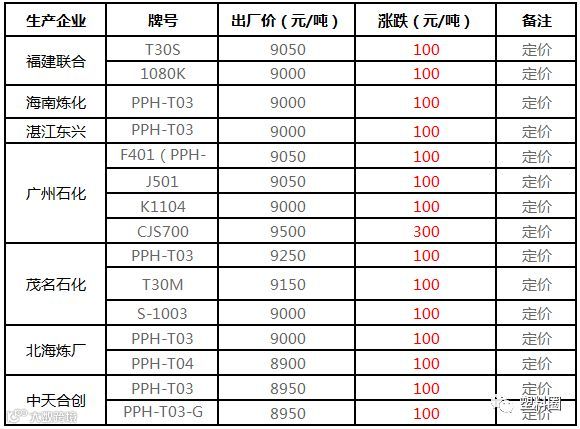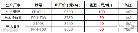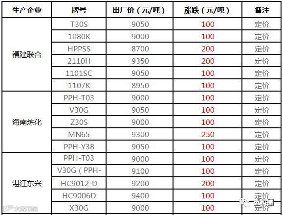 中石化华南PP出厂价上调100-300元/吨!!!