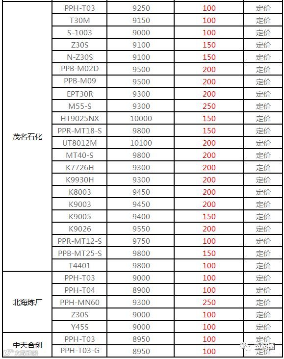 中石化华南PP定价上调100-300元/吨!