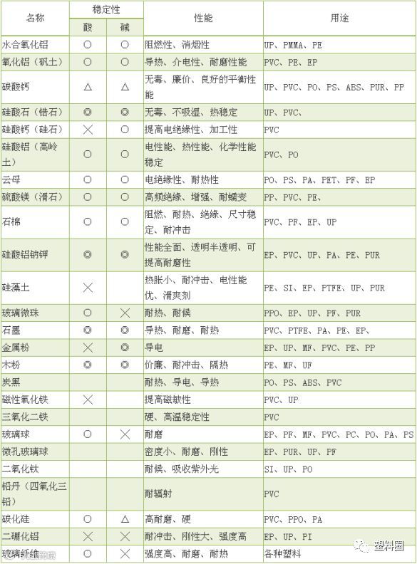 小编整理了两份常用塑料增强材料、填料及适用树脂以及性能用途的自查表,供大家快速查找,方便高效的选择填料以及增强材料。推荐收藏!!!
