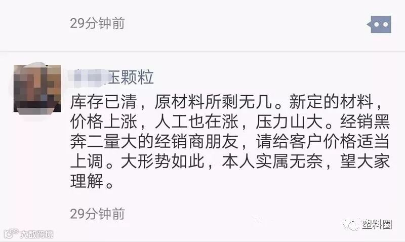 干塑料的兄弟们是苦不堪言!一面是厂房停产整改,投入大量资金。另一方面塑料原材料价格大涨,下游叫苦连天!