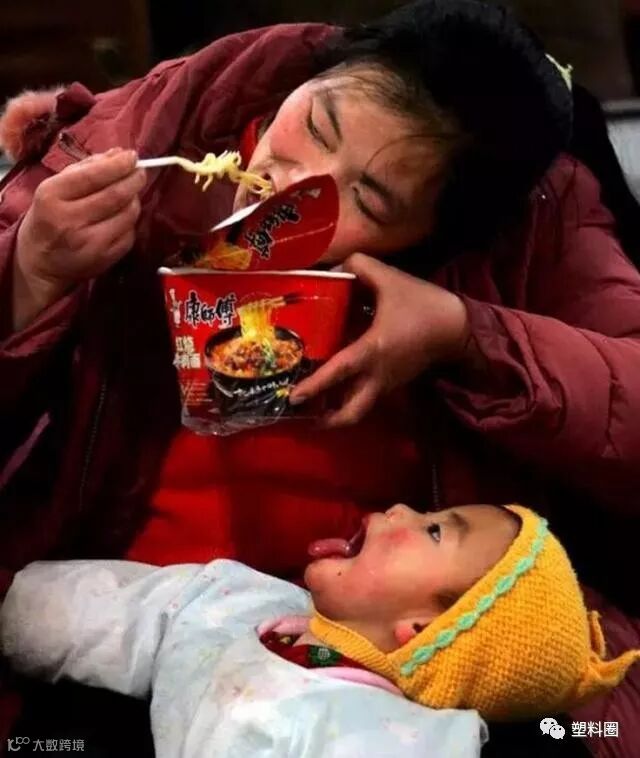 2006年1月18日,西客站候车室,一位母亲为了喂年幼的孩子把方便面咬成一小截,孩子却等不及地张大了嘴巴。(图|视觉中国)
