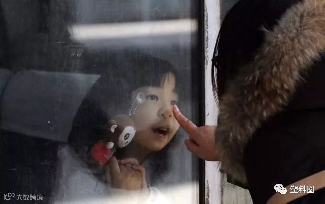 2015年2月2日早上,深圳西站开往怀化的列车,妻子带着女儿先回张家界老家,女儿眼含泪花地看着窗外的爸爸。(图|视觉中国)