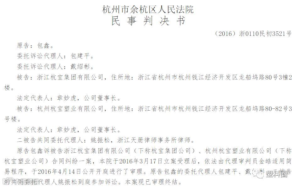 导读:近日,杭州市余杭区人民法院审理了一起合同纠纷案,被告浙江杭宝集团有限公司、杭州杭宝塑业有限公司因各种理由拖欠原告93余万元佣金被原告包鑫告上法庭。