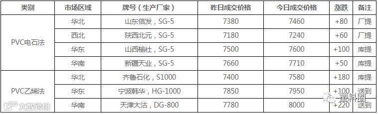 国内电石法5型料主流报价在7380-7730元/吨;乙烯料主流市场价格在7600-7990元/吨,高型号价格高100-150元/吨。