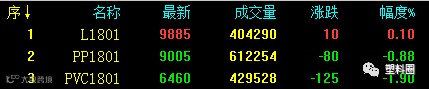 商品多数下跌,能化板块整体弱势下挫,盘中一度跳水。截止收盘,V1801跌1.90%,PP1801跌0.88%,L1801涨0.1%。