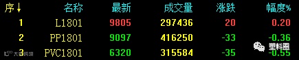 资金持续流出,塑料相关品种期货走势分化。L1801微幅收涨0.2%,V1801/PP1801分别收跌0.55%、0.36%。短期盘面调整尚未结束,塑市等待方向性指引。