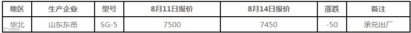 8月14日国内PVC出厂价格调整(单位:元/吨)