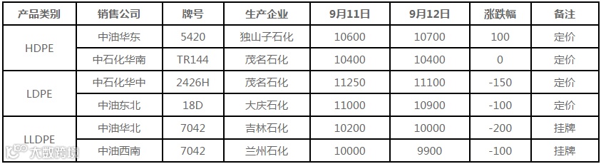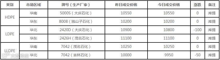 LLDPE主流市场价格在9800-10400元/吨,LDPE主流市场价格在10400-10900元/吨,HDPE膜主流市场价格在9950-10750元/吨。