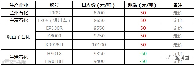 中油西北PP挂牌定价调整50元/吨!!!