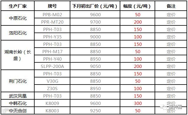 中石化华中PP下月初部分定价上调50-300元/吨!!!