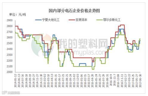 本月电石市场报价上涨30-60元/吨。下游电石到货不均衡,部分货源仍显紧张。PVC企业暂无检修计划,电石需求量较好。另外内蒙及周边地区安全、环保检查较严,电石运输等仍会略受阻碍。截至本月底各地电石到家价格为:华北地区接收价2730-2970元/吨;河南接收价在2790-2830元/吨;陕西当地货源送到2440-2550元/吨。