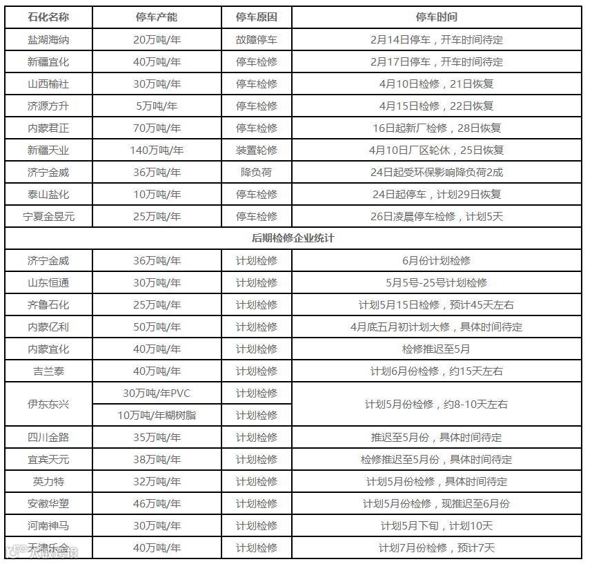 本月国内PVC装置检修统计