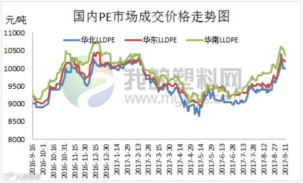 “金九银十”是秋收的时令,也是收获的季节,如今已经成为众多行业形容每年销售旺季的代名词,但是PE市场走势却不尽如人意。三季度以来,我国PE市场迎来了今年最强势的反弹行情,上半年5月份LLDPE跌至今年行情低谷,随之6-7月份开始震荡整理走势,随后在8月中旬期现市场同步发力,创造年内单轮上涨最大幅度。好景不长,9月4日开始,期货开始大幅回落,部分石化大幅下调高压及线性出厂价格,市场失去支撑,原料价格走软。交投气氛悲观,下游对高价原料采购积极性偏弱,商家出货不畅,多随行让利报盘以促成交。说好的金九银十难道与聚乙烯市场无缘?上涨行情就此终止?接下来小编为您详细分析: