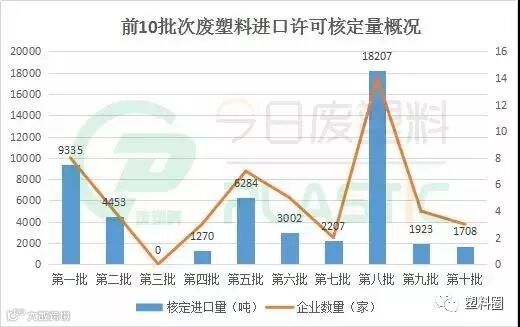 就2018年前10批次数据来看,废塑料的核定量普遍低于5000吨,从第9批次开始一降再降,较第9批次而言,此次又减少215吨核定量。
