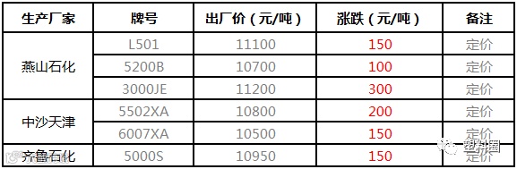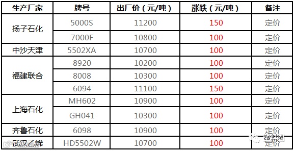 中石化华东HDPE定价上调100-150元/吨!
