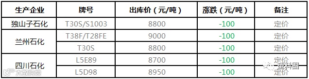 中石化华南PP下月初新定价调整50-100元/吨!!!
