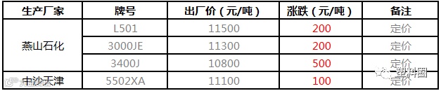 中石化华北HDPE月初部分价格调涨100-500元/吨!!!
