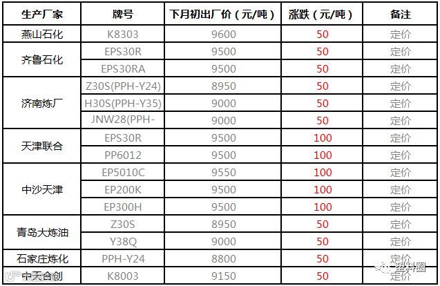 中石化华北PP下月初出厂价格上调50-100元/吨!!!