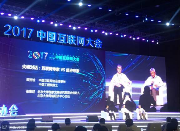 在“尖峰对话”环节,中国互联网协会理事长、中国工程院院士邬贺铨与北京大学国家发展研究院联合创始人、北京大学网络经济研究中心主任张维迎围绕互联网经济和实体经济的关系、互联网与实体经济融合发展等话题进行了深度对话。张维迎指出:“互联网和实体经济是一个互补关系,不是一个替代关系,所有的互联网都建立在实体经济的基础上。离开了实体经济,互联网什么都不是。”
