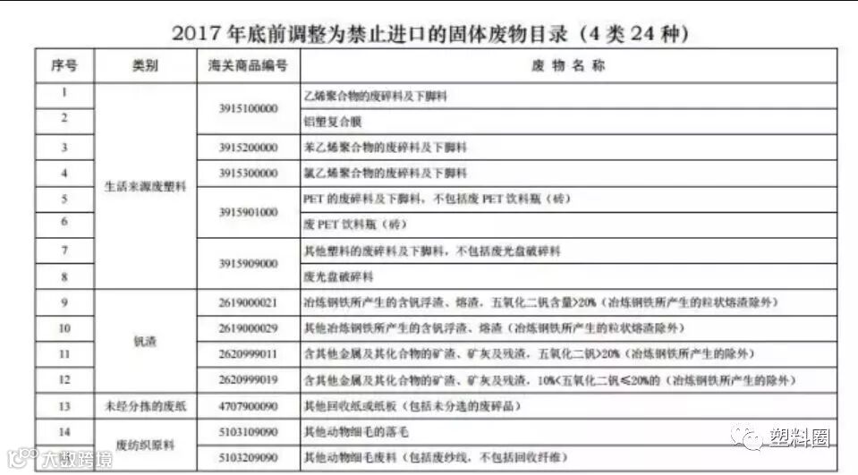 根据这份实施方案,2017年年底前,我国将全面禁止进口环境危害大、群众反映强烈的固体废物;2019年年底前,逐步停止进口国内资源可以替代的固体废物。