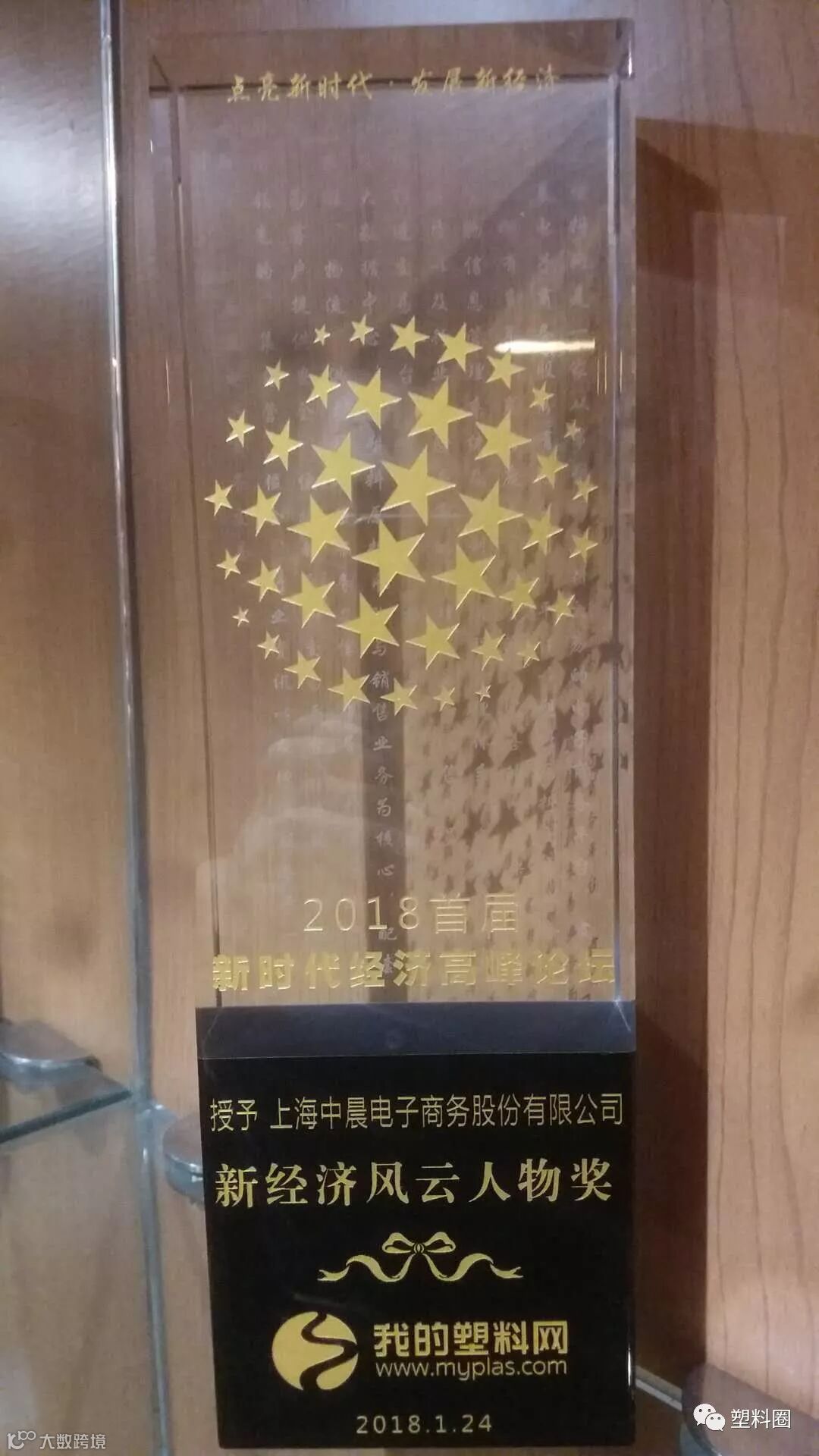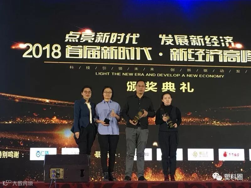 2018年1月24日,以“点亮新时代·发展新经济”为主题的首届“新时代·新经济”高峰论坛在北京饭店金色大厅举行。我的塑料网创始团队受邀参加活动并荣获“新经济风云人物奖”。
