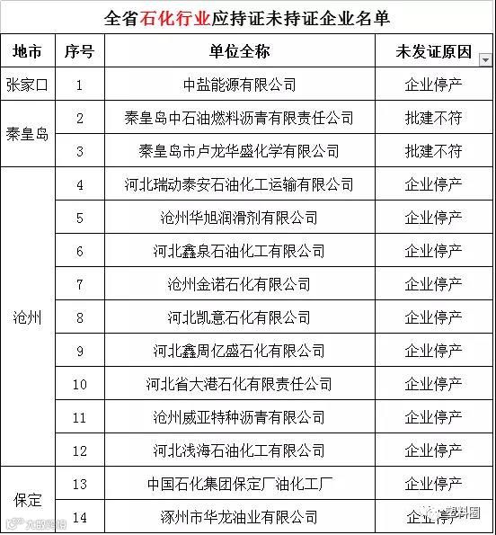 河北全省石化行业应持证未持证企业名单如下: