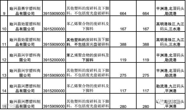 2017年12月29日,相隔三天第二批限制类进口审批公示,这一次,审核通过33家,再生塑料相关只有4家,全部是PET的废碎料及下脚料,不包括废PET饮料瓶(砖)相关厂家。获批进口总量4453吨。