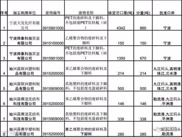 2018年1月12日,环保部固废管理中心公布了2018年第三批建议批准的限制进口类申请明细表。