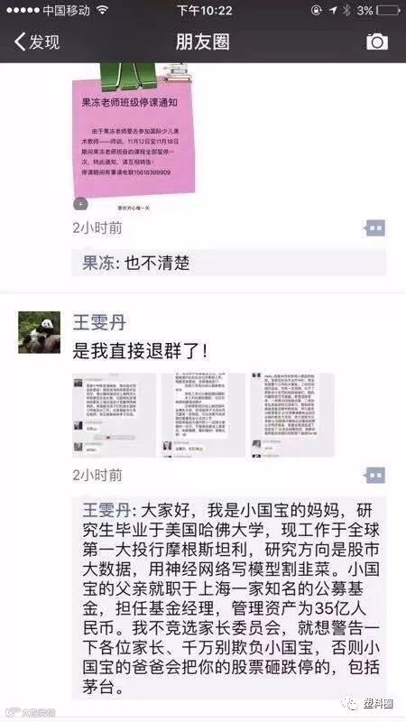 不屑一顾的家长,有点看不下去了:你们玩吧,我弃权,临走也含沙射影的留下狠话。你们别欺负我们家小国宝,孩子他爸手握35亿,敢动我们,小心把你们的股票砸停,包括茅台。