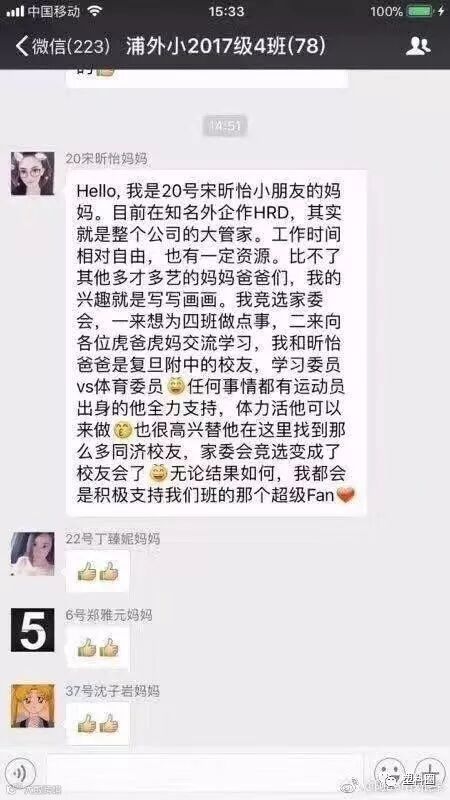 昨日一则家长竞选家委会的微信截图刷爆朋友圈,并引发网友热议。很多人的第一反应,都是这样的↓↓↓这确定是选家委会,不是选CEO?