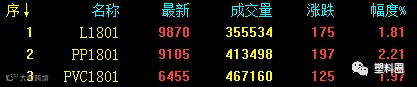 今日塑料相关品种期货全线走强,其中PP1801跳空高开、突破上行,成功站稳9100关口,日涨幅高达2.21%。