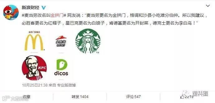 网友:麦当劳更名为金拱门,