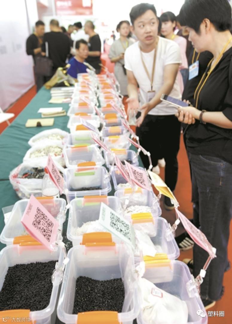 “老板,你们这个材料环保又省钱,我们考虑大批量购买。”10月12日,位于二楼的再生塑料专区内,一位印度商户看上了再生塑料产品,当场表达采购意愿。