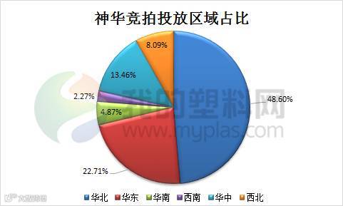 就投放区域来看,本周华北地区和华东地区皆为神华网拍投放的重点区域,6月26日-6月30日,华北地区投放数量在10056.85吨,投放占比在48.6%;华东地区投放数量在4700吨,占比22.71%;西北地区投放量在1674.3吨,占比8.09%。