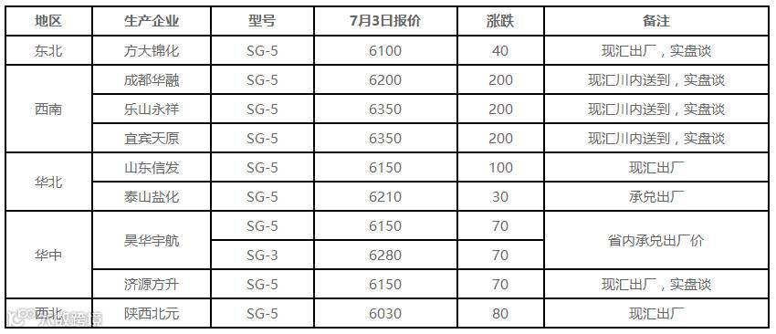 7月3日国内PVC出厂价格调整(单位:元/吨)