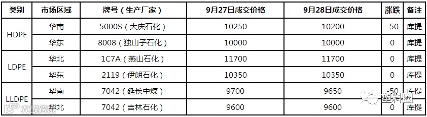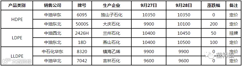 LLDPE主流市场价格在9450-10050元/吨,LDPE主流市场价格在10350-10650元/吨,HDPE膜主流市场价格在10000-10700元/吨。