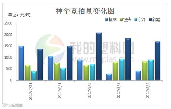 本周神华竞拍总量在19925.16吨,较上周19811.15吨增加114.01吨。其中神华榆林竞拍量在4182.586吨,较上周5699吨减少1516.414吨;神华包头竞拍量在3760吨,较上周3698吨增加62吨;神华宁煤竞拍量在3481.325吨,较上周3070吨增加411.325吨;神华新疆竞拍量在8501.25吨,较上周7344.15吨增加1157.1吨。