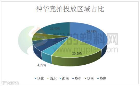 就投放区域来看,华北地区成为神华投放的重点区域,本周投放量在7269.55吨,占比36.48%;华东地区投放量在4263.036吨,占比21.40%;西北地区投放数量在4042.575吨,占比20.29%。