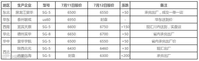 7月12日国内PVC出厂价格调整(单位:元/吨)