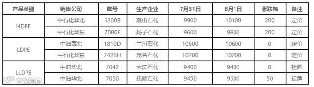 今日国内PE市场价格小幅上涨。月初石化价格坚挺,线性期货高开震荡,市场得到支撑,贸易商多小幅高报。国内各大市场线性涨50-100元/吨,华北和华东部分高压涨100元/吨,个别低压价格涨50-100元/吨。终端观望情绪浓厚,询盘尚可,整体成交一般。LLDPE主流市场价格在9300-9700元/吨,LDPE主流市场价格在9800-10300元/吨,HDPE膜主流市场价格在9300-9800元/吨。