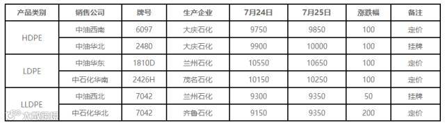 今日国内PE市场价格延续小涨。石化多数上调出厂价格,早间线性期货高开震荡,市场得到有力支撑,各大区部分线性价格涨50-100元,高压价格涨100元/吨。个别低压价格涨50-100元。午后期货大幅度下行,贸易商多小幅让利出货,华北线性价格小幅走跌50元/吨,终端询盘尚可,部分市场成交较好。LLDPE主流市场价格在9400-9750元/吨,LDPE主流市场价格在9800-10350元/吨,HDPE膜主流市场价格在9200-9800元/吨。