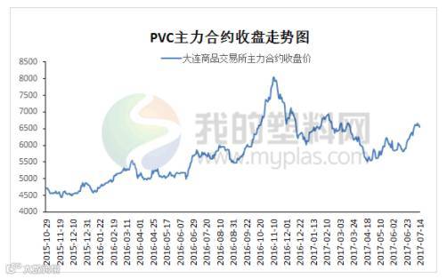 本周大商PVC主力合约1709涨后大跌。具体来看,周初开盘价在6600元/吨,周五收盘6555元/吨,最高6720元/吨,最低6495元/吨,周跌55元/吨或0.83%。成交量减少至116万手,持仓量减少至19.9万手。