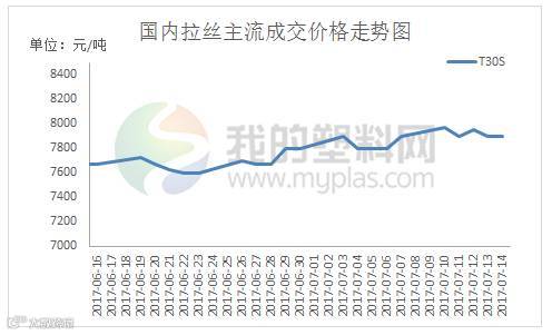 根据我的塑料网真实成交数据显示,本周国内PP市场报盘震荡调整。截止本周五拉丝主流价格在7500-8050元/吨不等,较上周走低100-200元/吨左右;低融共聚价格在8200-8750元/吨不等,报价较上周小幅调整。