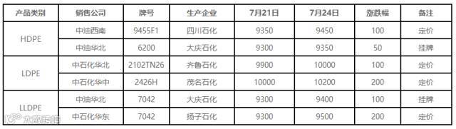 今日国内PE市场价格小幅上涨。线性期货高开震荡,周初石化多数上调出厂价格,市场受到支撑,贸易商多随行跟涨报盘出货,各大区线性和高压价格涨50-100元/吨,部分低压牌号涨50-100元/吨。终端询盘尚可,华东部分市场成交较好。LLDPE主流市场价格在9400-9700元/吨,LDPE主流市场价格在9750-10350元/吨,HDPE膜主流市场价格在9200-9800元/吨。