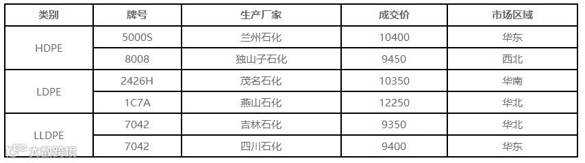 PE:我的塑料网(www.myplas.com)预计明日国内PE市场延续跌势,幅度在50-100元/吨。LLDPE主流市场价格在9200-9450元/吨,LDPE主流市场价格在10000-10200元/吨,HDPE膜主流市场价格在9800-9900元/吨。
