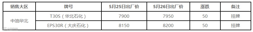 表5 5月26日国内PP出厂价格调整(单位:元/吨)